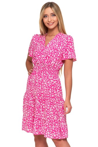 Oto sukienka, która jest kwintesencją letniej elegancji i kobiecości - rozkloszowana, z krótkimi rękawami w stylu motylkowym, jest synonimem zwiewności i subtelnej gracji. Ten model sukienki to idealne połączenie wygody i stylowego designu, które sprawdzi się zarówno podczas casualowych spotkań, jak i na bardziej formalne okazje.