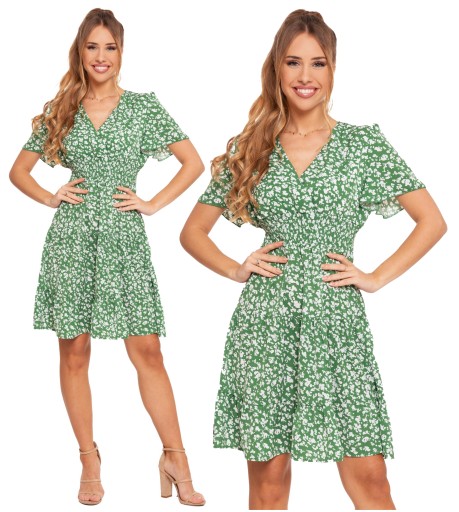 Oto sukienka, która jest kwintesencją letniej elegancji i kobiecości - rozkloszowana, z krótkimi rękawami w stylu motylkowym, jest synonimem zwiewności i subtelnej gracji. Ten model sukienki to idealne połączenie wygody i stylowego designu, które sprawdzi się zarówno podczas casualowych spotkań, jak i na bardziej formalne okazje.