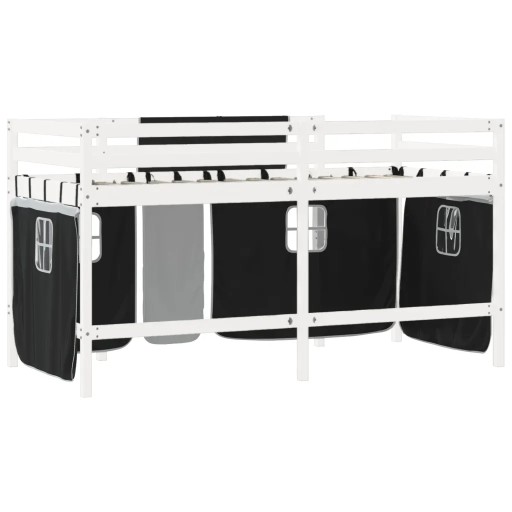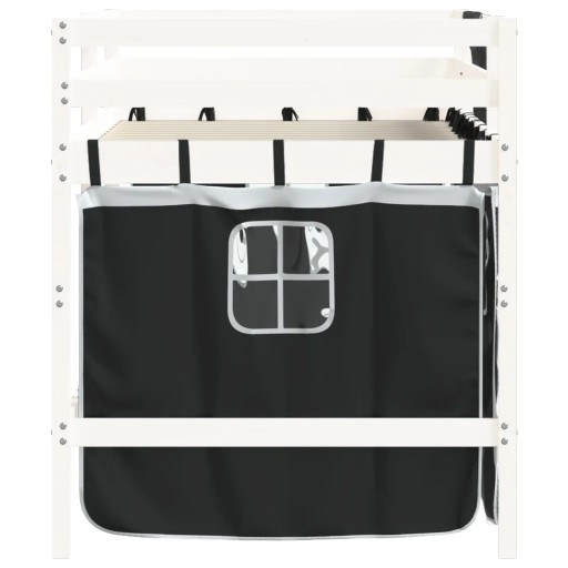 Dziecięce łóżko na antresoli, czarno-białe zasłonki, 90x200 cm Lumarko!