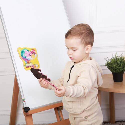 Każdy obrazek został podzielony na różne elementy, co pomaga dziecku nauczyć się łączyć osobne części w jedną całość. Zadaniem dziecka jest połączenie tych elementów puzzli w taki sposób, aby ułożyć pełne postacie owcy i świnki. Ponadto, elementy puzzli są magnetyczne, co oznacza, że dziecko może się nimi bawić na dowolnej metalowej powierzchni, takiej jak tablica magnetyczna lub podkładka magnetyczna.