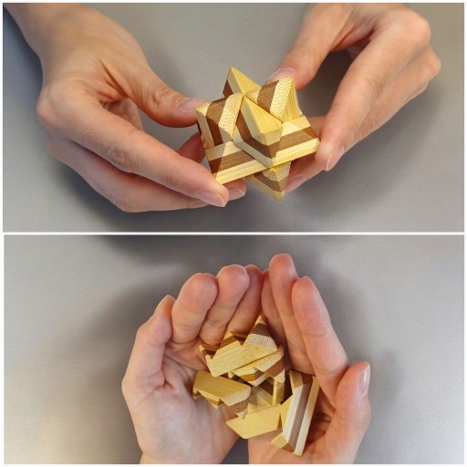 Star Puzzle - to jedna z trudniejszych łamigłówek polegająca na ułożeniu 6 identycznych elementów w taki sposób, aby powstała z nich gwiazda. Ta łamigłówka to prawdziwe wyzwanie - logiczne, kreatywne i manualne.
