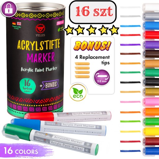 - Markery mają obrotową końcówkę, co daję możliwość malować lub pisać jak grubą tak i cienką czcionką od 2 do 5 mm.