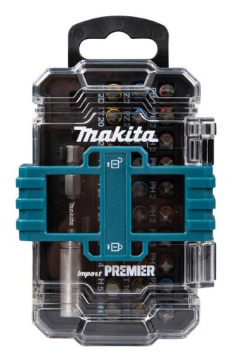 PH1 x 1 • PH2 x 5 • PH3 x 2 • PZ1 x 1 • PZ2 x 5 • PZ3 x 2 • T10 x 1 • T15 x 1 • T20 x 3 • T25 x 2 • T30 x 2 • H4 x 1 • H5 x 1 • H6 x 1 • SL4 x 1 • SL6 x 1 • Magnetyczny uchyt na bity