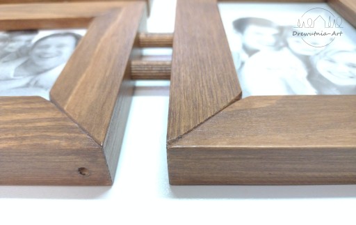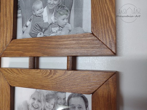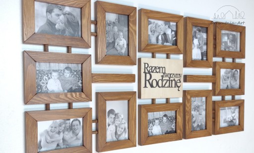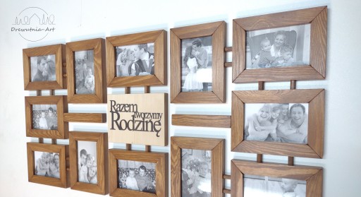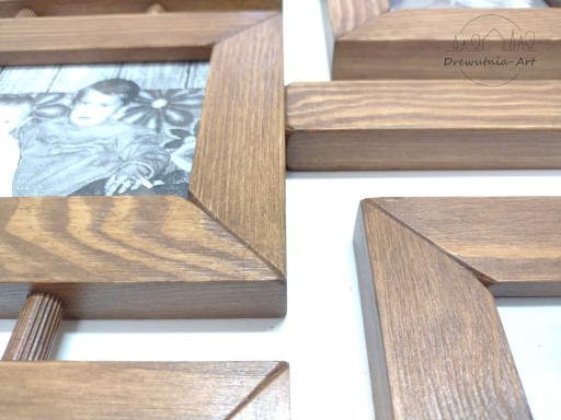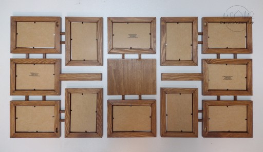 Ta wspaniała galeria wykonana jest z naturalnych materiałów. Ramki wyprodukowano w 100% z drewna sosnowego. Listewki są malowane lakierobejcą, jednocześnie pozostawiając widoczne naturalne słoje drewna. Towar jest bardzo wysokiej klasy.