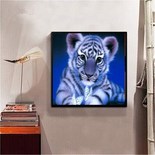 Prezentujemy niesamowitą MOZAIKĘ DIAMENTOWĄ - BIAŁY TYGRYS. Wykonanie obrazu jest czasochłonne i wymaga cierpliwości, ale niesamowity efekt końcowy wynagradza wszystko! Ukończone dzieło mieni się pięknymi kolorami w zależności od światła czy kąta patrzenia.