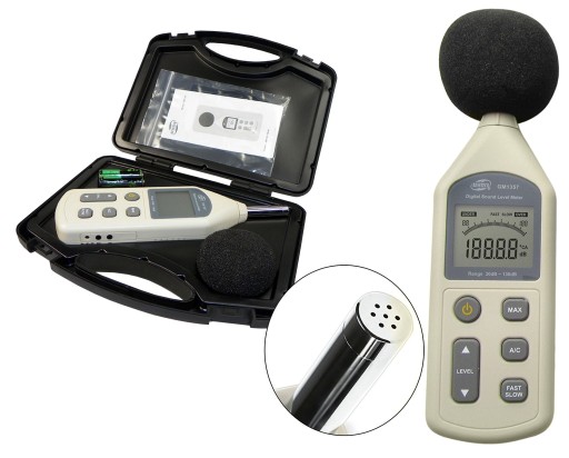 Cyfrowy miernik natężenia dźwięku został zaprojektowany tak aby sprostać wymaganiom bezpieczeństwa dla pomiarów w inżynierii, medycynie i przemyśle. Sprawdzi się w badaniu natężenia dźwięku w różnych środowiskach jak fabryki, biura, ruch uliczny, stanowiska pracy, w domu, ale również do sprawdzenia jakości dźwięku systemów audio.