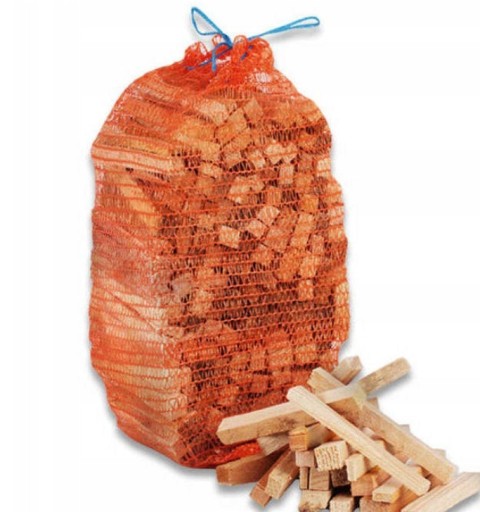 Rozpałka z drewna sosnowego. Wilgotności 8-14 % pakowana w worki raszlowe o wymiarach 45 cm x 60 cm. (Przybliżone wymiary gotowego produktu to 45cmx25x25.)