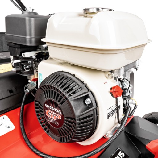 Aerator / Wertykulator spalinowy napędzany jest wydajnym silnikiem spalinowym Honda GP200 o pojemności 196cm3, wyposażony został w dwa wymienne wałki robocze.
