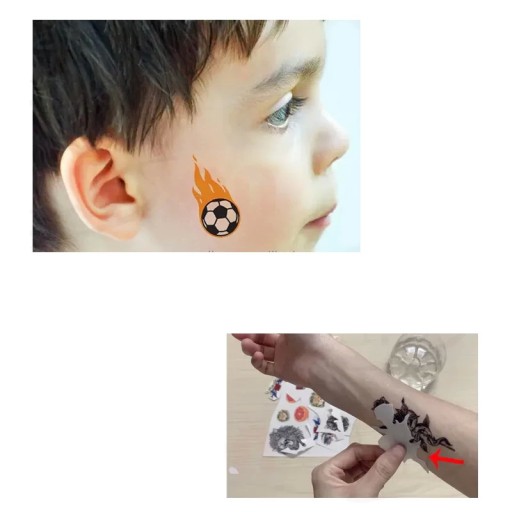 Z jednego arkusza A4 można wykonać nawet kilkanaście tatuaży (w zależności od wielkości). Świetnie sprawdza się na różnego rodzaju eventy, wyjazdy firmowe itp. Pozwala także na sprawdzenie jak na naszym ciele prezentowałby się stały tatuaż.