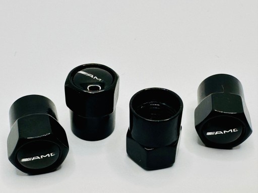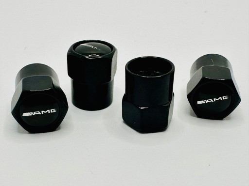Zestaw 4szt nakrętek w kolorze czarnym na wentyle samochodowe z oznaczeniem AMG