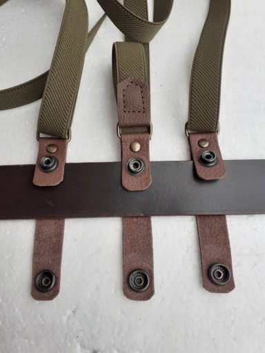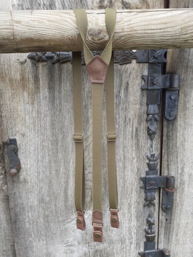 WYKONANE Z DOBREJ JAKOŚCIOWO GUMY SZELKOWEJ.POSIADAJĄ REGULACJĘ DŁUGOŚCI A SOLIDNE SZLUFKI DOBRZE UTRZYMUJĄ SPODNIE NA PASKU.WSTAWKA I SZLUFKI WYKONANE SĄ Z WYSOKO GATUNKOWEJ SKÓRY LICOWEJ KOLORU BRĄZOWEGO DZIĘKI TEMU SZELKI BĘDĄ SŁUŻYŁY PRZEZ DŁUGI CZAS.METALOWE RAMKI, REGULATORY,NAPY,NITY KOLOR STARE ZŁOTO.GUMA SZEROKA NA 2 CM.ROZCIĄGAJĄCA SIĘ NA 160 CM.GORĄCO POLECAM !!!