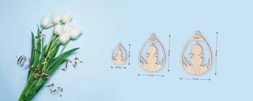 Drewniane zawieszki w kształcie jakjka z ażurowymi wzorami to naturalna i ekologiczna dekoracja. Przeznaczona do dekorowania farbami, flamastrami, kredkami lub techniką decupage.