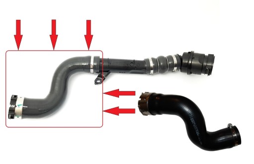 Przewód znajduje się między turbosprężarką a intercoolerem. Z jednej strony łączy się on bezpośrednio z plastikową rurą intercoolera, a z drugiej z chłodnicą powietrza.