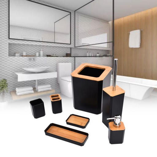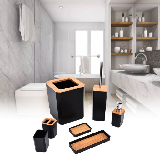 1. 7-częściowy zestaw łazienkowy: 7 rodzajów kombinacji akcesoriów to idealne materiały do łazienki. Akcesoria łazienkowe to: pojemnik na mydło, mydelniczka, uchwyt na szczoteczki do zębów i kubek, szczotka do toalety, kosz na śmieci, taca.