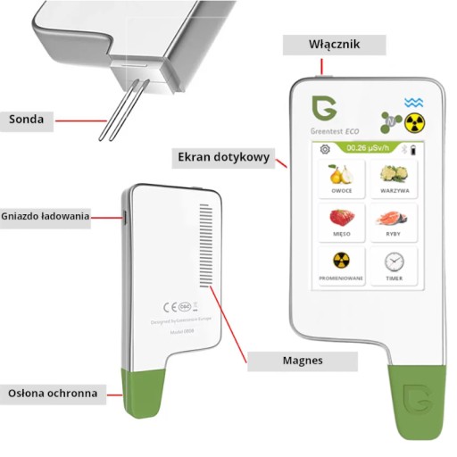 Nie tylko sprawdzisz azotany w owocach, warzywach, mięsie i rybach, ale także siłę promieniowania beta. Twój osobisty licznik Geigera zawsze pod ręką!