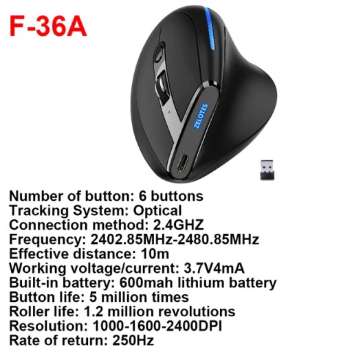 Мышь ZELOTES F-26C вертикальная стационарная эргономичная 3200DPI 2.4G