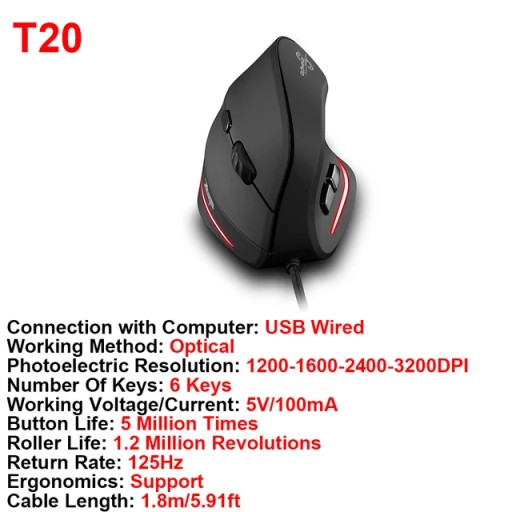 Мышь ZELOTES F-26C вертикальная стационарная эргономичная 3200DPI 2.4G