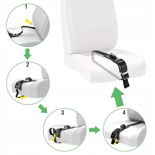 - Ustaw długość pasa, tak aby haczyk znajdował się na brzegu fotela.