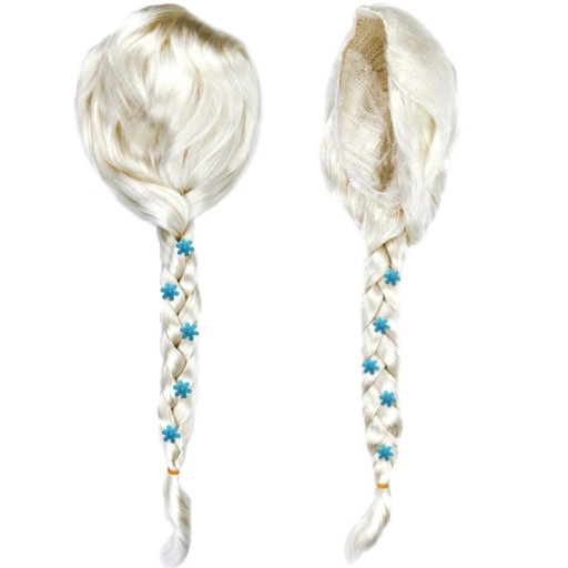 ✨✨✨Zestaw zawiera również blond perukę do stroju Elsa upinaną u góry z długim warkoczem. Peruka posiada elastyczną siateczkę, dzięki niej można ukryć naturalny kolor włosów. Włos jest miękki i przyjemny w dotyku