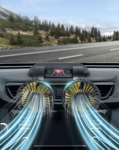 - Profesjonalny projekt: obracający się o 360 ° samochód z wentylatorem i podstawa wentylatora, możesz regulować wentylator kątowy w zależności od potrzeb, wydmuchuje gorące powietrze z samochodu. Konstrukcja z podwójną głowicą, szybkie i skuteczne usuwanie zapachów lub kurzu, zapewnia świeże powietrze.