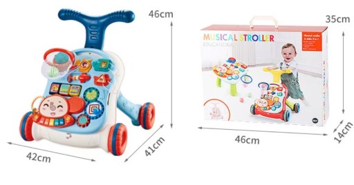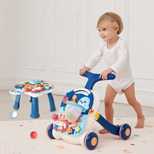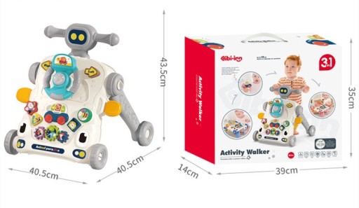 Idealny chodzik/pchacz 2w1 dla Twojego dziecka, z wieloma gadżetami na przednim panelu. W każdej chwili można go zamienić w edukacyjny stoliczek.