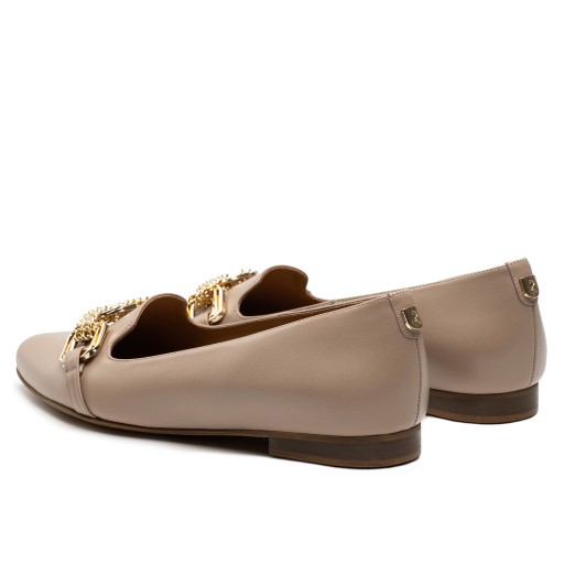 Balerinki to obecnie jeden z najmodniejszych modeli butów. Nadają stylizacjom lekkości, są niezwykle wygodne i zajmują niewiele miejsca w torebce, dzięki czemu są idealnymi zapasowymi butami na wyjazd, spacer lub imprezę. Różowy kolor i delikatny złoty łańcuszek nadają im eleganckiego wyglądu. Balerinki to podstawowy element garderoby – nie tylko dla minimalistek!