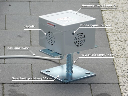 Odstraszacz CICHY Light Hermetyczny, na Parking, taras, stych, Działa na 4 Strony, Na Stopce, Zasilanie 230V