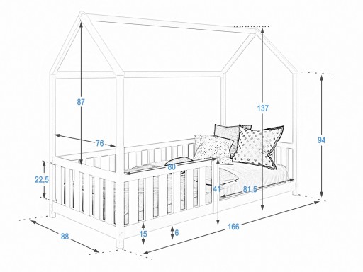 Bezpieczeństwo przede wszystkim! - Nasze Łóżeczko Domek D7 80x160 cm to połączenie funkcjonalności, designerskiego wyglądu i niesamowitego bezpieczeństwa. Wykonane z solidnego drewna sosnowego, zapewnia trwałość i stabilność na wiele lat. Dodatkowo, płotek umieszczony na wszystkich bokach łóżeczka gwarantują spokojny sen i bezpieczeństwo Twojego dziecka. Niska konstrukcja zapewni dodatkowe bezpieczeństwo Twojego malca.