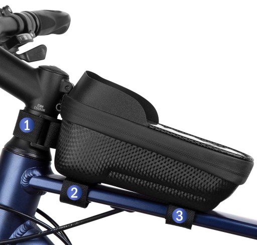 Sakwa jest łatwa w montażu i demontażu. Wystarczy przymocować ją za pomocą 3 rzepów na przedniej części ramy roweru, blisko wspornika kierownicy.