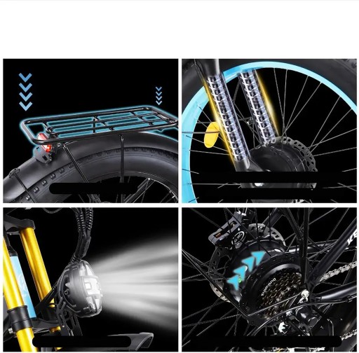 Rower elektryczny KETELE wyposażony w przednie i tylne silniki o mocy 1000 W. Mocny silnik o mocy 2000 W zapewnia dużą moc i zdolność do wspinaczki oraz może pokonywać różne nierówne tereny, takie jak śnieg, plaża, góry lub drogi miejskie. Zapewnia niezwykle szybką i ekscytującą funkcję.
