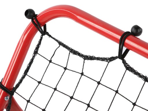 Rama rebounder'a wykonana jest ze stali, pokrytej lakierem w intensywnym, czerwonym kolorze. Nylonowa siatka o grubym splocie jest odporna na wielokrotne uderzenia piłką. W zestawie znajdują się cztery śledzie, które zagwarantują stabilność konstrukcji. Rama posiada czterostopniową regulację głębokości, a co za tym idzie konta nachylenia siatki. W zestawie z bramką znajduje się 20 elastycznych odciągów, które zapewniają odpowiednie naprężenie siatki, aby trening był efektywny i wygodny.