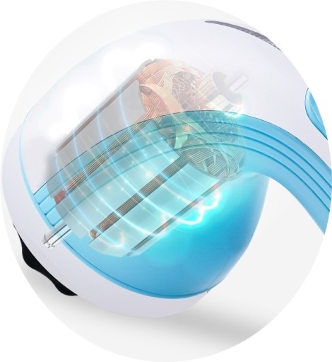 Sekret przyrządu ukryty jest w ruchu rotacyjnym końcówek masujących.
