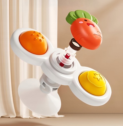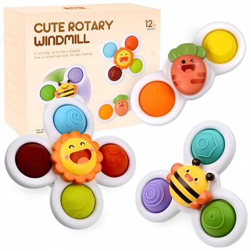 Z przyssawką: Każdy spinner w zestawie posiada przyssawkę, dzięki której można go przytwierdzić do wanny i zainteresować dziecko.