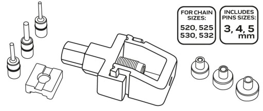 Narzędzia będą niezbędne w warsztatach oraz serwisach motocyklowych, rowerowych i samochodowych. Zalecamy przypiłować nity przed rozkuwaniem łańcucha. Sprawi to, że urządzenie będzie działało bezawaryjnie przez wiele lat.