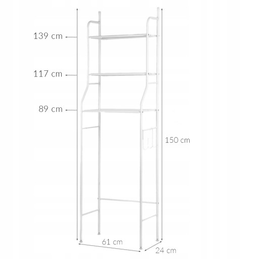 3-poziomowy regał nad pralkę będzie świetnym rozwiązaniem, aby stworzyć dodatkową przestrzeń w zagraconej łazience lub pralni. Wykonana z wysokiej jakości ramy ze stali nierdzewnej i kilku akcesoriów, szafka do przechowywania jest wyjątkowo trwała i stabilna. Dzięki organizerowi zagospodarujesz niewykorzystaną przestrzeń nad toaletą, tworząc wiele dodatkowych schowków, w których można przechowywać detergenty, proszek do prania, szampon, żel do kąpieli itp.