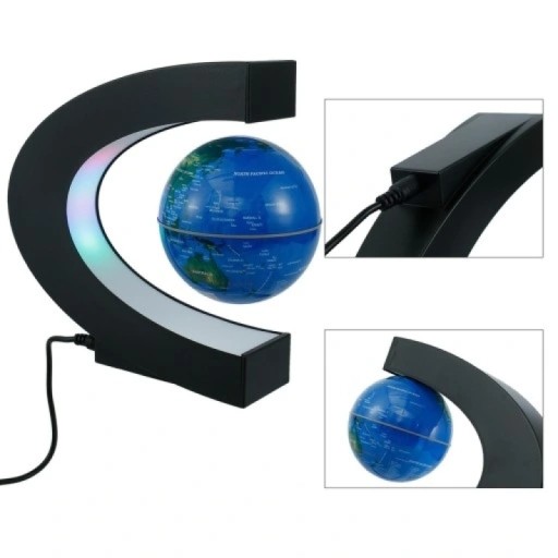 unosząca się w powietrzu kula ziemska dzięki sile magnetycznej działającej na dole i na górze ramy z 3 koralikami LED, które pokazują kolory fioletowy, różowy i cyjan. Ten fajny gadżet technologiczny jest wyposażony w funkcję światła LED, która wygląda bardzo fajnie w ciemności. Zalecana klasa wiekowa: 5+. Atrybut ostrzegawczy : Potężne magnesy! Nie umieszczaj go w pobliżu urządzeń komputerowych/kluczy USB/odtwarzaczy multimedialnych/innych typów urządzeń elektronicznych.