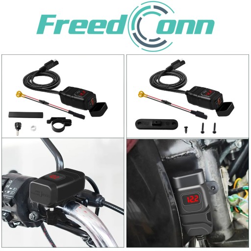 Dzięki dwóm uchwytom w zestawie możemy zamontować uchwyt na kierownicy, pod lusterko lub do jakiejkolwiek śruby na kierownicy max 10mm. Ładowarka została zaprojektowana do działania w niesprzyjających warunkach atmosferycznych i jest wyposażona w osłonę gniazd zabezpieczające przed wodą.