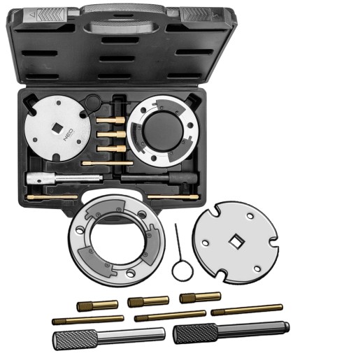 Zestaw blokad rozrządu do silników diesla Ford/Citroen/Fiat/Jaguar/Land Rover/LDV/Peugeot 11-334, NEO TOOLS zestaw do blokowania kół rozrządu w samochodach osobowych. W skład zestawu wchodzą elementy do blokady rozrządu w silnikach diesla. Zapewnia podstawowe narzędzia do ustawiania i blokowania silnika.