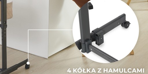 Łóżeczko posiada 4 kółka z hamulcami. Dzięki temu z Neste Up 2 możemy przejechać z jednego pomieszczenia do drugiego i zabierać je w dowolne miejsce, a gdy już ustawimy je tam, gdzie chcemy, łatwo je unieruchomimy.