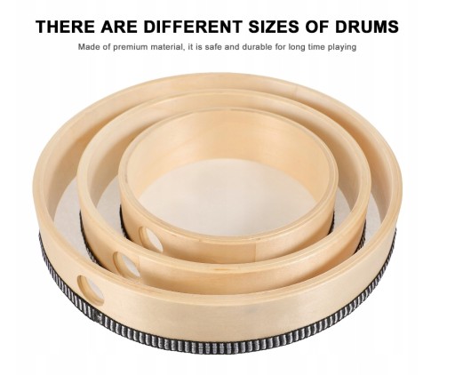 ✅ Dostępne są różne rozmiary bębnów, a każdy z nich jest wyposażony w pałkę perkusyjną.