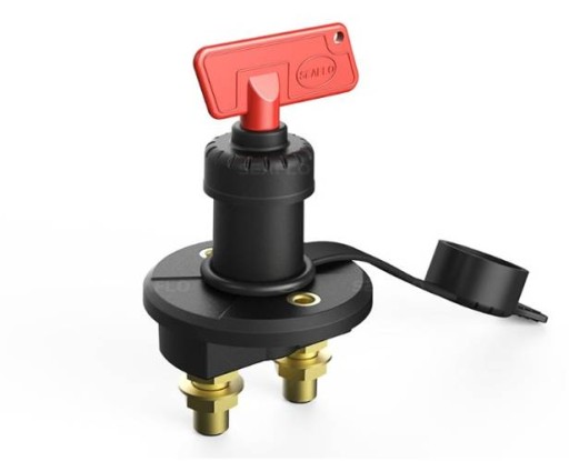 Seaflo SFBIS2-01 to pokładowy główny wyłącznik zasilania elektrycznego z kluczykiem, umieszczony w wodoodpornej obudowie z mocnego polimeru. Po wyjęciu kluczyka otwór jest zamykany hermetyczną zaślepką. Niewielki i łatwy do zamontowania. Przyłącza przewodów wykonane ze mosiądzu. Może być montowany zarówno wewnątrz, jak i na zewnątrz.