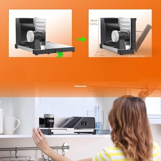 Ulepszony silnik o mocy 120 W z czystej miedzi, który ma wystarczającą moc i prędkość, aby pokroić dużą ilość jedzenia. Ta krajalnica do mięsa może zaoszczędzić czas wiele czasu i wysiłku, gdy musisz szybko ugotować posiłek. (Hałas operacyjny <65dB)