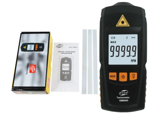 - Podstawowa precyzja (0.1%n+5d) rpm; (2.5~999.9 rpm), ±(1%n+5d) rpm; (1000~99999 rpm)