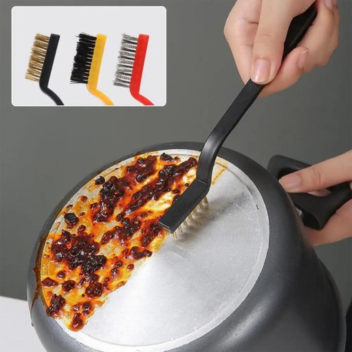 Zestaw trzech szczotek wykonanych z drutu stalowego, nylonowego i mosiężnego. Wyprofilowana rączka pozwala na wyższą efektywność czyszczenia w porównaniu z prostą wersją. Szczotki idealnie sprawdzą się do usuwania zanieczyszczeń z różnych powierzchni.