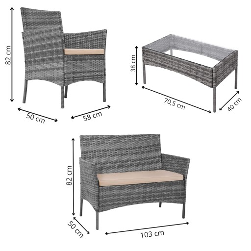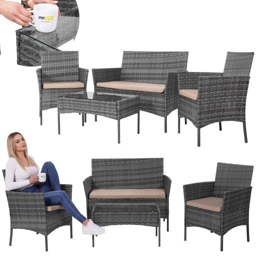 - Materiał: technorattan, szkło hartowane, poliester/pianka PP
