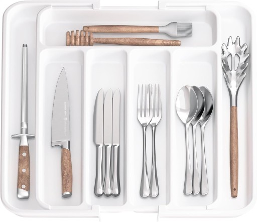 Выдвижной органайзер с регулируемой секцией для столовых приборов, металл
