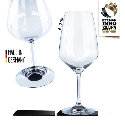 - Zestaw zawiera: 2 x kieliszek ze szkła z magnesem + 2 x podkładka metalowo-nanożelowa