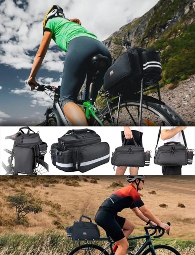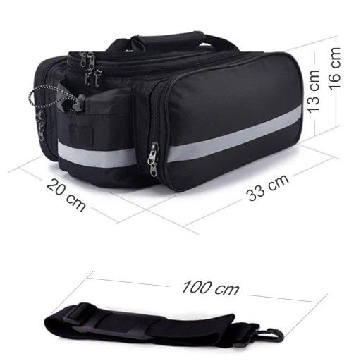 - Torba jest kompatybilna z większością bagażników rowerowych.