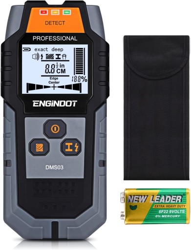WYKRYWACZ DETEKTOR WILGOTNOŚCI, PRZEWODÓW KABLI METALI W ŚCIANIE DREWNA METALU + BATERIA, MODEL DMS03 ENGINDOT