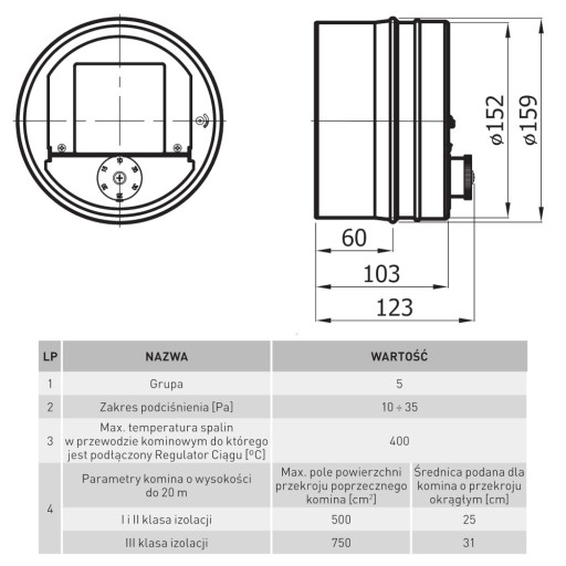 Zmiana nastawionego na Regulatorze Ciągu podciśnienia odbywa się przez zmianę wyważenia przepustnicy, której dokonuje się za pomocą pokrętła. Na pokrętle zaznaczona jest podziałka do nastawiania podciśnienia, na etykietce – znak wskazujący aktualnie nastawioną wartość podciśnienia.